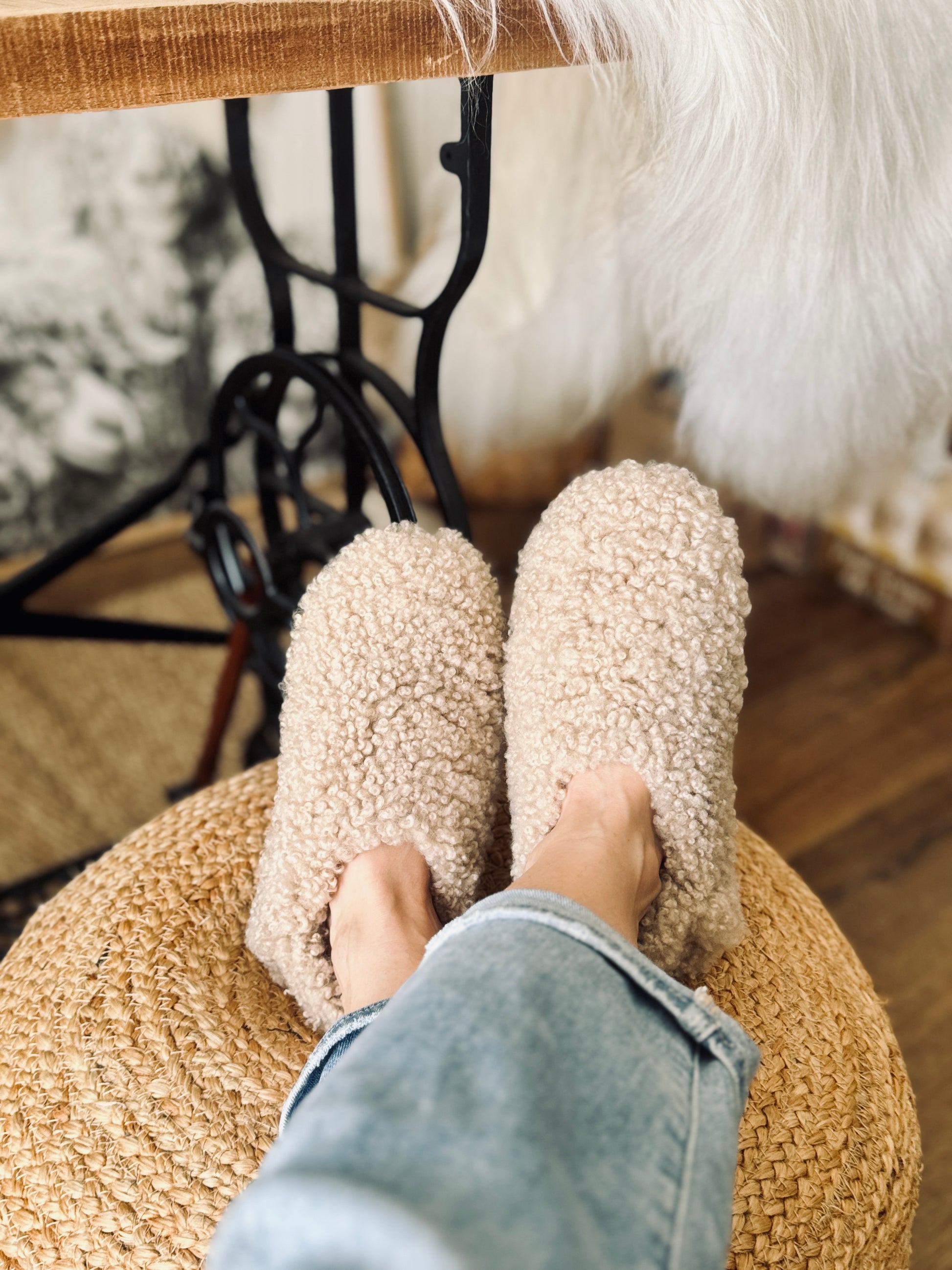 Follkee Teddy Bear Slippers Natural Beige Sheep Skin Wool Lined Handcrafted Luxury Slippers