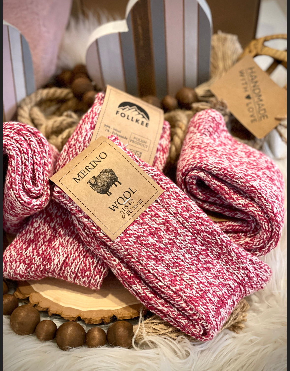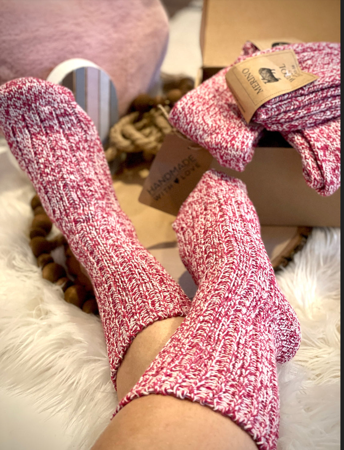 - Stylish Women's Pink Socks Merino Wool by Follkee - Socks are made of 99% Merino Wool, 1 % wool Polyamide